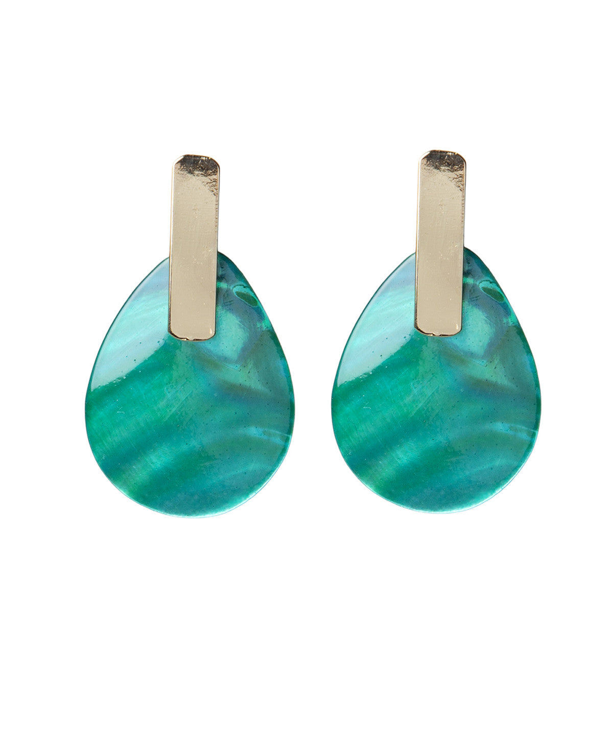 Pendiente oval en nácar, con barrita de metal, en dos colores: naranja brillante, azul turquesa, dos piezas surtidas. Medidas: 5 cm. Composición: nácar,metal.