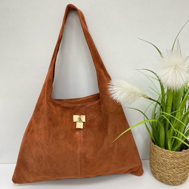 BOLSO SHOPPPING PIEL ANTE TIPO SACO CON DETALLE CANDADO