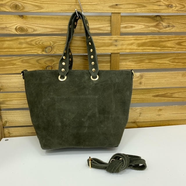 BOLSO PIEL ANTE SHOPPING MEDIANO. ASAS CON TACHUELAS Y BANDOLERA REGULABLE