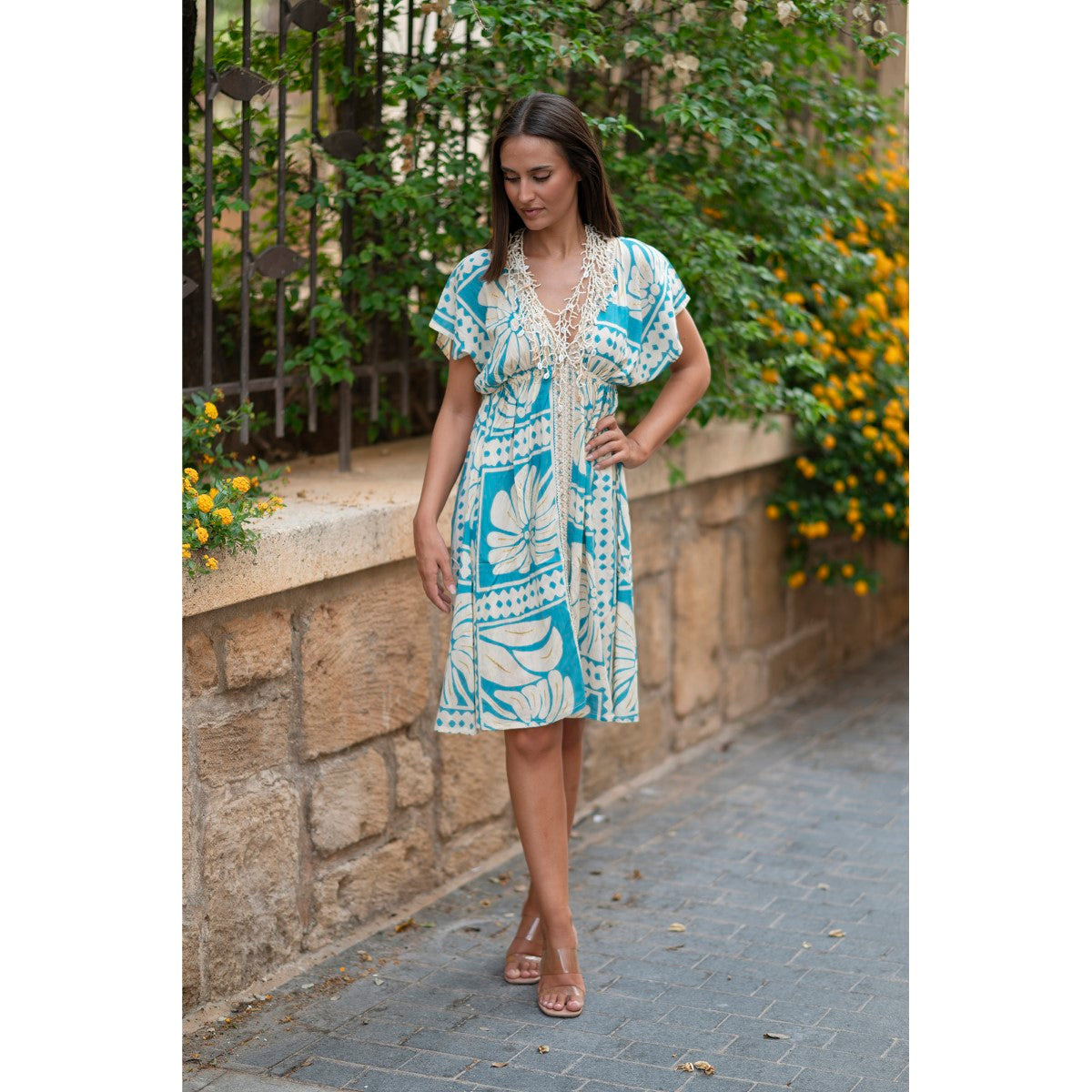 VESTIDO CORTO ESTAMPADO MANGA MURCIÉLAGO